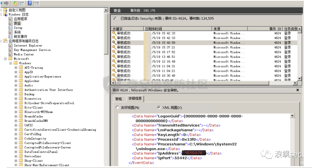 由于被(攻击者:内10.10.1.50)远程命令执行,所以确认被感染了,所以上机排查分析日志:eventvwr 【4624】