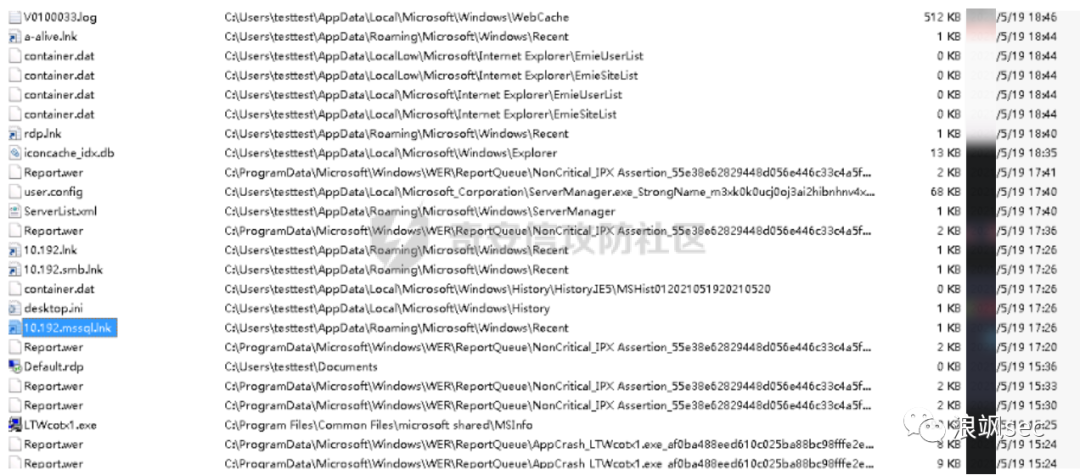 通过lnk文件,判断攻击者于5月19日,查看了10.192.mysql 、10.192.netbios、10.128、10.1.smb文件