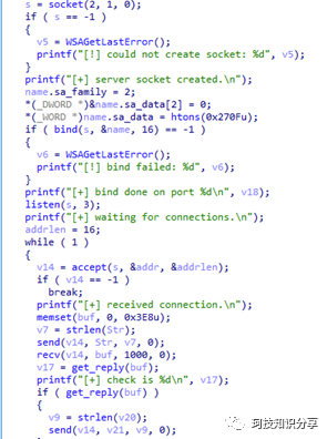 我们实际运行这个程序,可以发现其在9999端口开启了一个tcp服务。