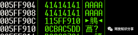 115FF910,不存在00,因此5FF910栈被写入shellcode。