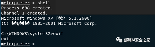 除此之外,可以输入background命令将当前会话放到后台,此命令适合在多个Meterpreter会话的场景下使用。