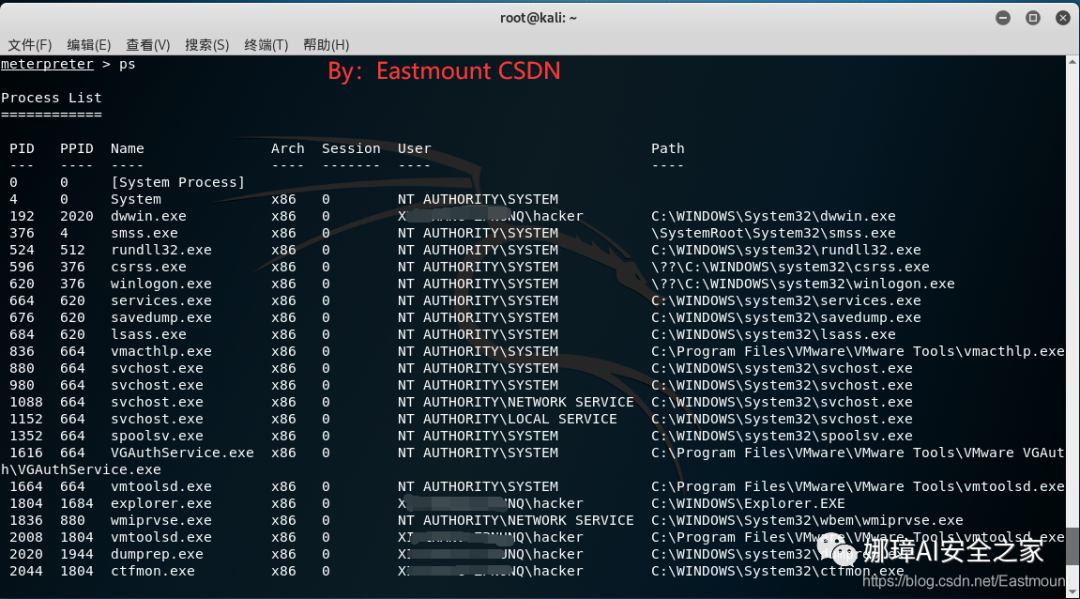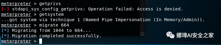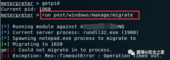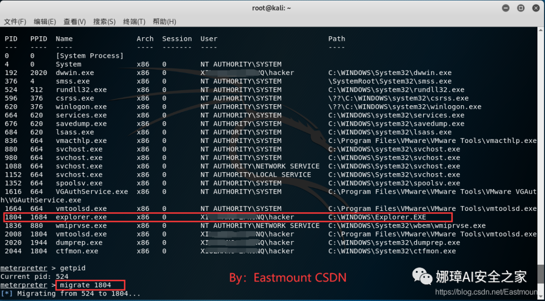 migrate也是一个post模块,可以将meterpreter当前的进程移动到其他指定的进程中,这样做的好处是可以给meterpreter一个相对稳定的运行环境,同时可以很好的躲避杀软。