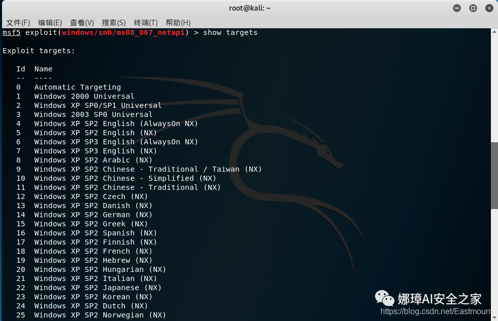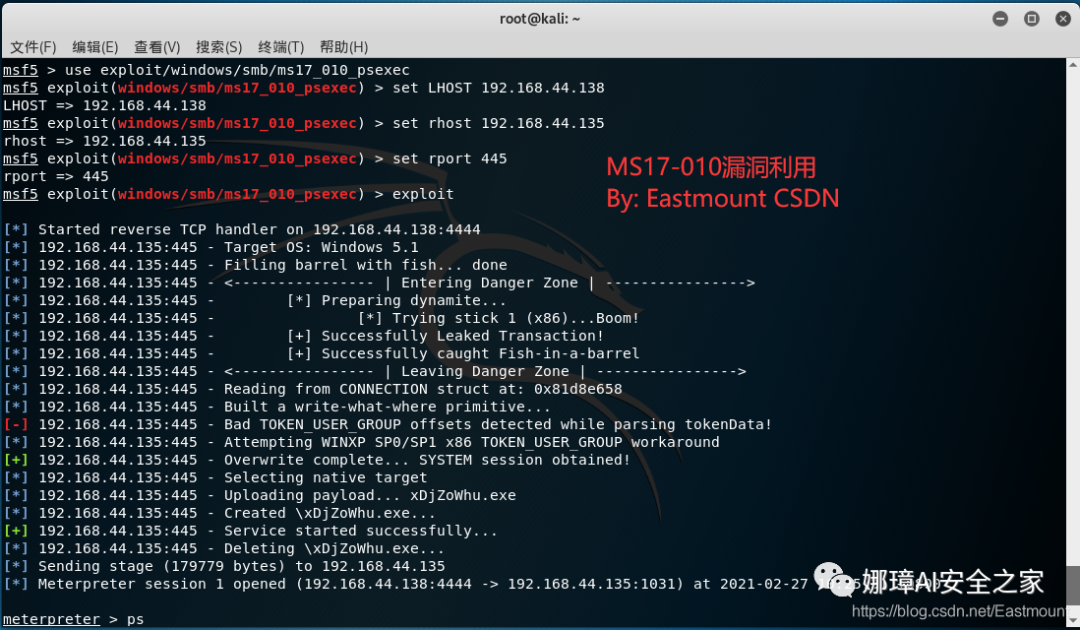 这里以上篇文章介绍的MS17-010漏洞为例进行说明。