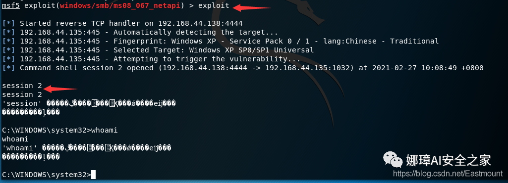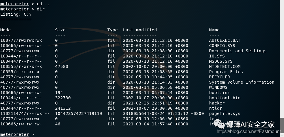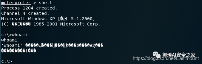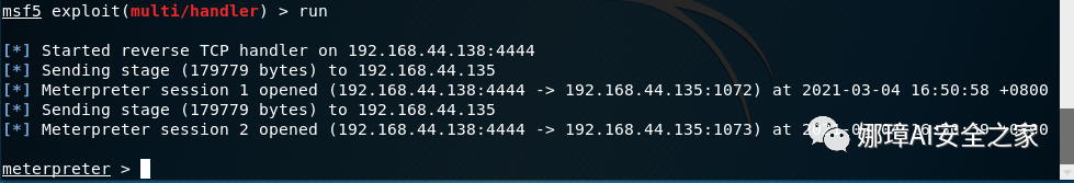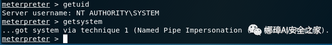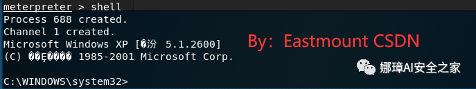 至此,我们攻击成功。得到一个Meterpreter会话,如下图所示。