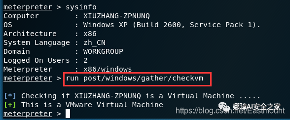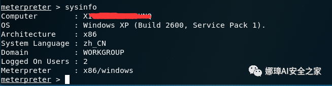 通常会先输入sysinfo命令查看目标机的系统信息,例如操作系统和体系结构。