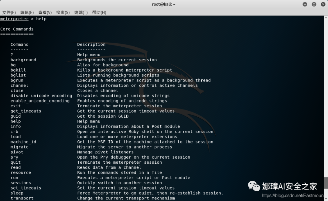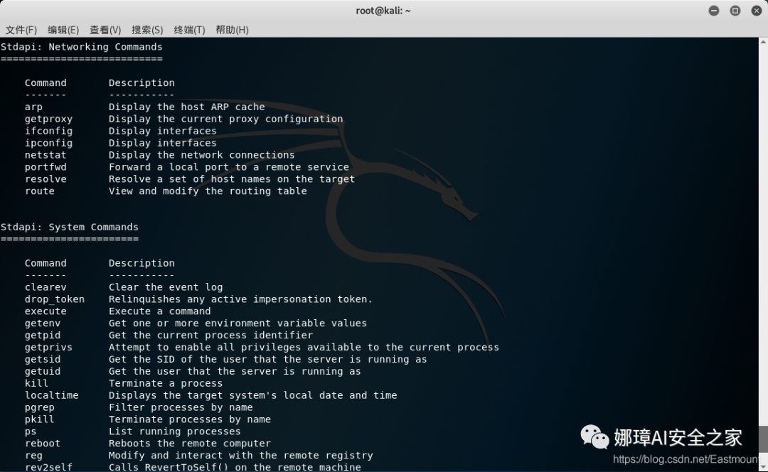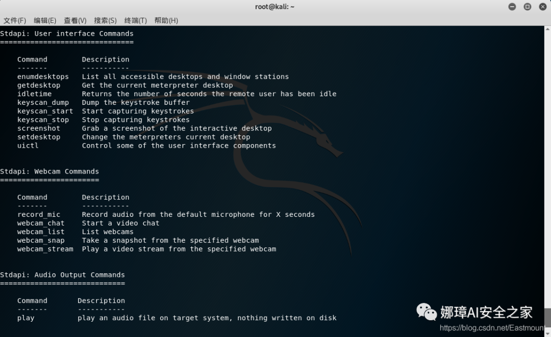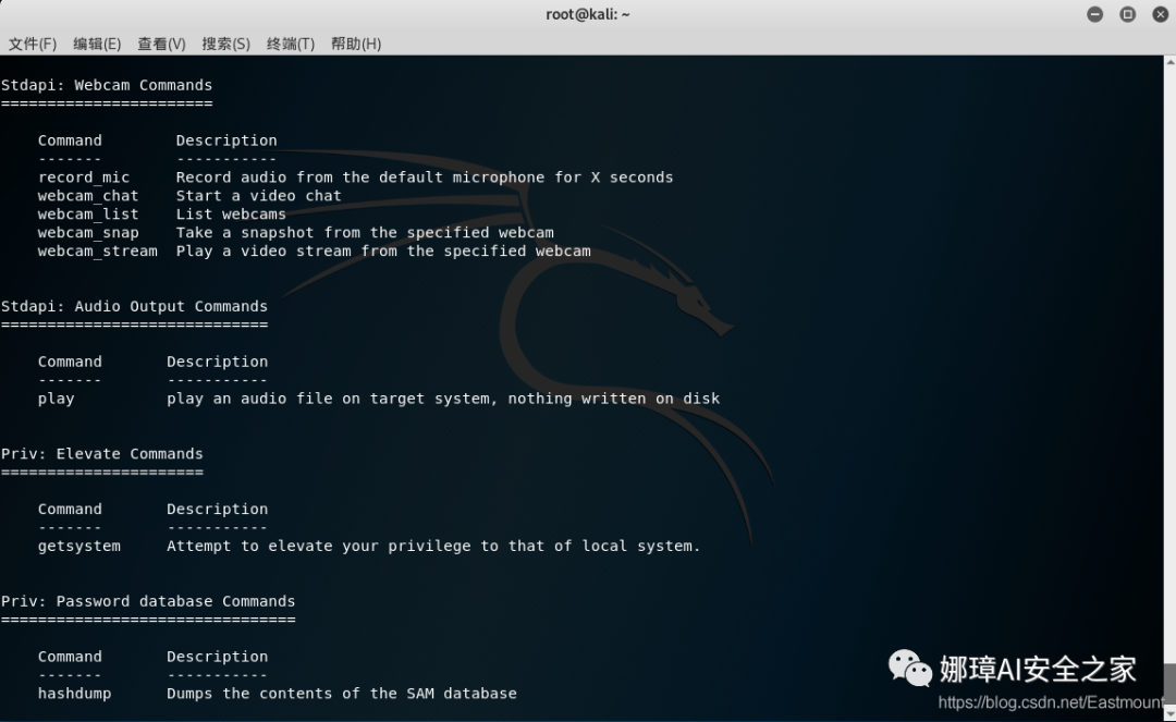 同时,meterpreter的payload是真强大,它可以实现太多太多的功能了。我们可以在meterpreter下面进行help,查看相关用法。