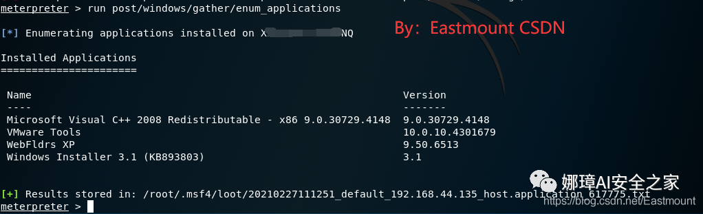 (10) 列举完了用户之后, 继续输入命令列举安装在目标机上的应用程序。