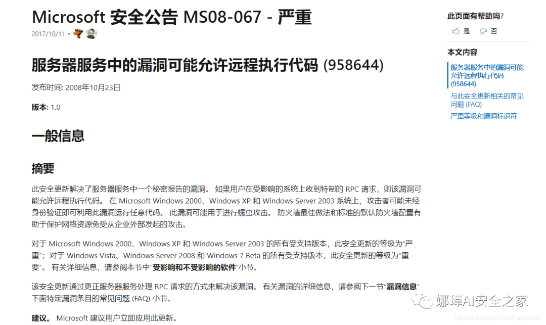 为计算机安全最新补丁,微软已经发布补丁MS17-010修复该漏洞,读者也可以通过第三方工具下载补丁