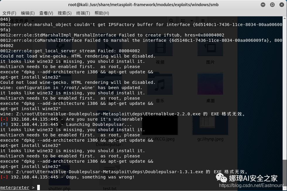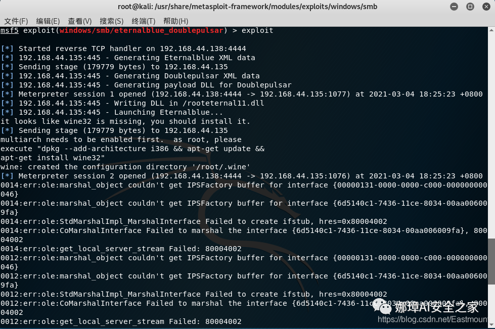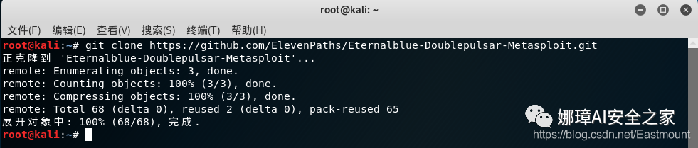 git clone https://github.com/ElevenPaths/Eternalblue-Doublepulsar-Metasploit.git运行结果如下图所示: