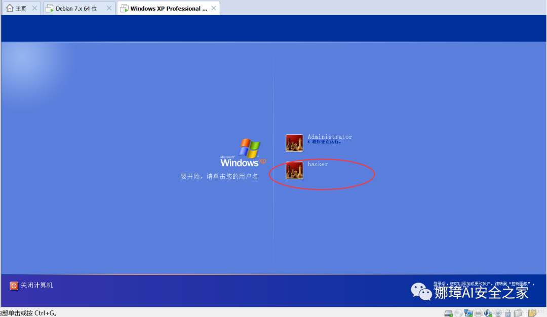 输入创建的用户名hacker和密码123456回车,弹出提示框点击OK,稍等就会成功登录XP系统。