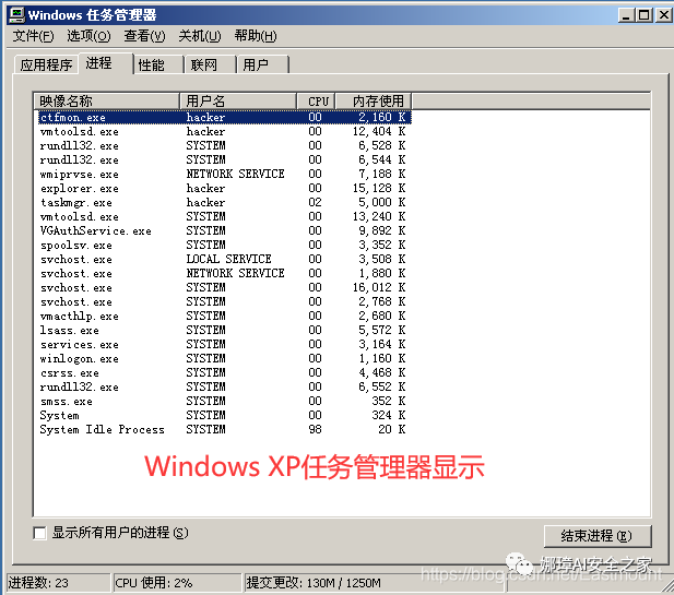 这些进程与我们的目标主机如XP系统打开时对应的,如下图所示。