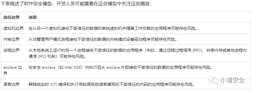 信任边界存在于应用程序可能与信任度较低的上下文提供的数据进行交互的位置,例如系统上的另一个进程,或者内核模式设备驱动程序中的非管理用户模式进程。