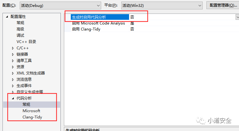 此编译器选项将激活报告潜在安全问题(比如缓冲区溢出、未初始化的内存、null指针取消引用和内存泄漏)的代码分析。此选项默认已关闭。建议开启这个开关。