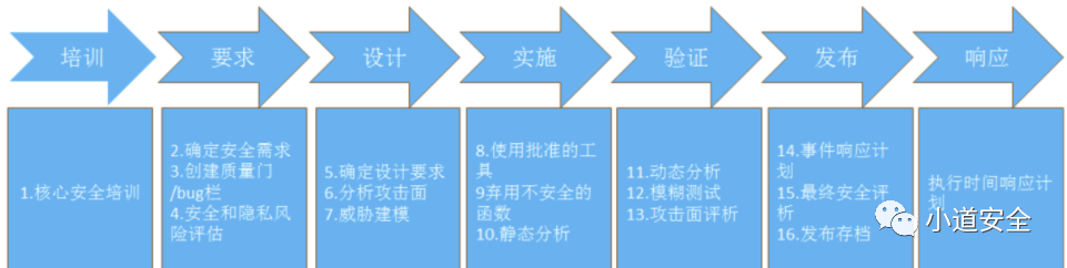 SDL的核心理念是将安全考虑集成在软件开发的每一个阶段:需求分析、设计、编码、测试和维护。从需求、设计到发布产品的每一个阶段每都增加了相应的安全活动,以减少软件中漏洞的数量并将安全缺陷降低到最小程度。
