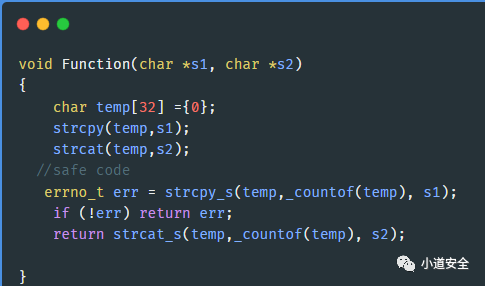 安全函数不会阻止或更正安全错误。相反,它们会在发生错误时捕获错误。它们对错误情况执行其他检查。如果出现错误,则调用错误处理程序。