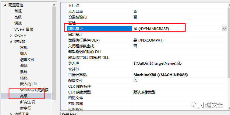 3、/DYNAMICBASE(使用地址空间布局随机化)