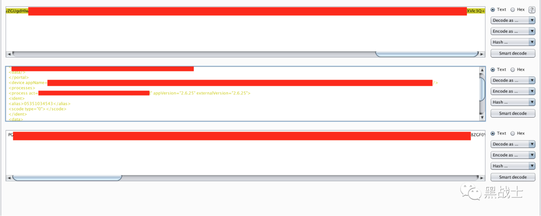 在此情况中,应用程序通过 base64 编码的 XML 请求向 HTTP 发布数据上发送所有请求。在登录机制上,它将用户名作为参数别名发送,将密码作为scode发送。scode 参数内的值已进行哈希处理。分析显示,它使用了所提供密码值的 md5 值。请求中还有另一个有趣的标志:scode 有一个属性,其类型值为 2。