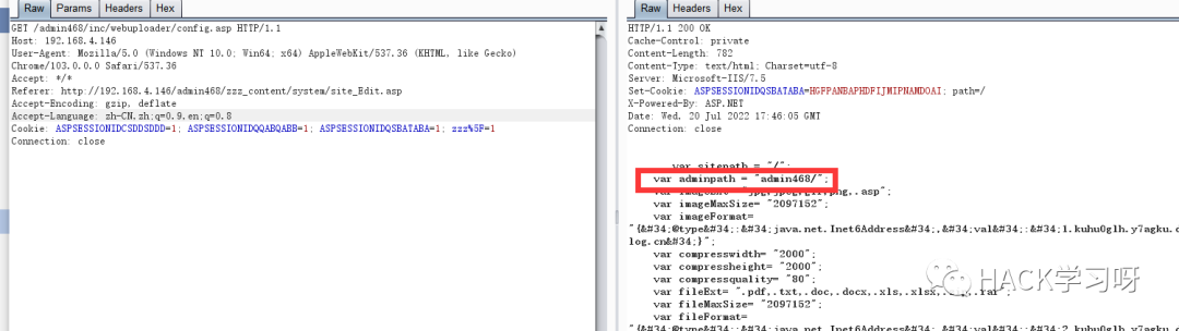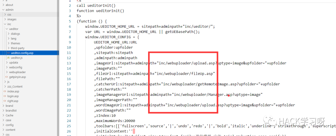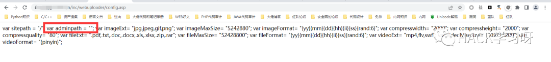 这边的话发现的一个文件是webuploader下的一个文件,admin468/inc/webuploader/config.asp,直接访问的是可以看到对应的后台目录的,但是前提是需要知道后台目录,所以没有什么多大的用处