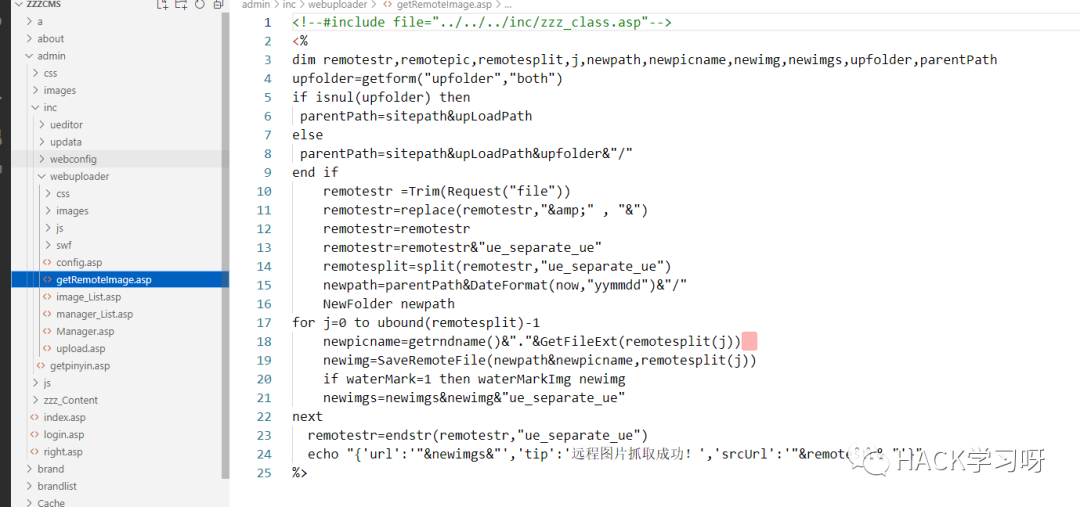 这边发现webuploader的admin\inc\webuploader\getRemoteImage.asp没有对上传组件进行单独鉴权操作,如下图所示
