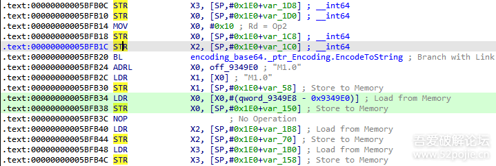 因为是多返回值,所以有很多黄色的未知变量,看汇编就清晰很多了,以 encoding_base64._ptr_Encoding.EncodeToString 为例: