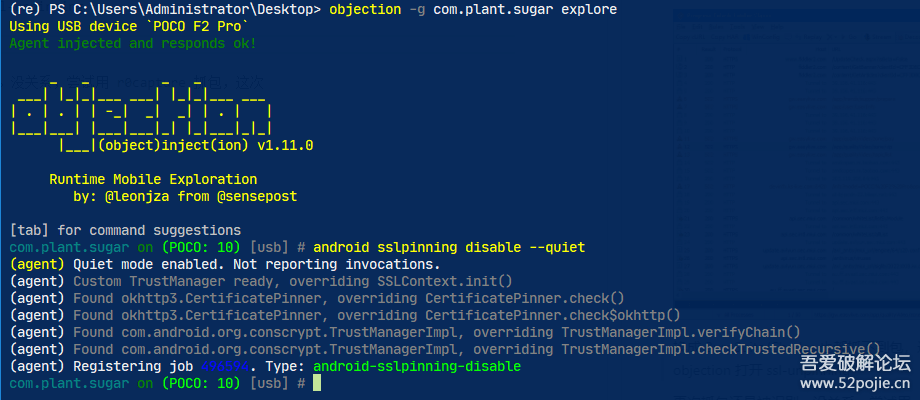 换成 BurpSuite/Charles 也都抓不到包,返回都是证书相关的错误;是有 ssl-pinning 吗?尝试用 objection 过掉;sslpinning disable 发现了 okhttp3