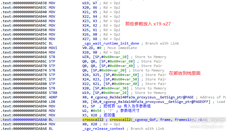 proxyzeus__GetSign:crosscall2 函数是 c 调用 go 时使用的,参数分别是:cgo 函数指针,参数组(对应调用参数和返回值的结构体指针),参数组长度,ctxt;详细了解可以参照源码。main.proxyzeus__GetSignmain.proxyzeus__GetSign:有转成了 go slicezeus_mobile.GetSign:对 elect 做了判断
