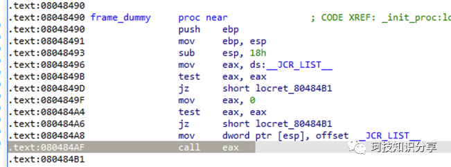 call eax,在ida中查看对应地址,发现frame_dummy,似乎又是留给我们的后门函数。