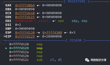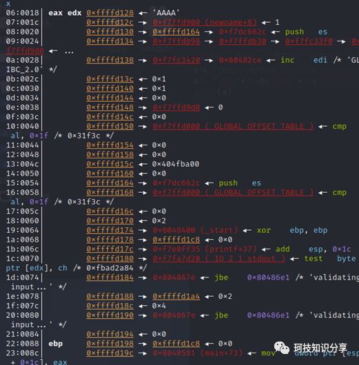 eax也能利用吗?gdb调试查看eax全程指向地址。