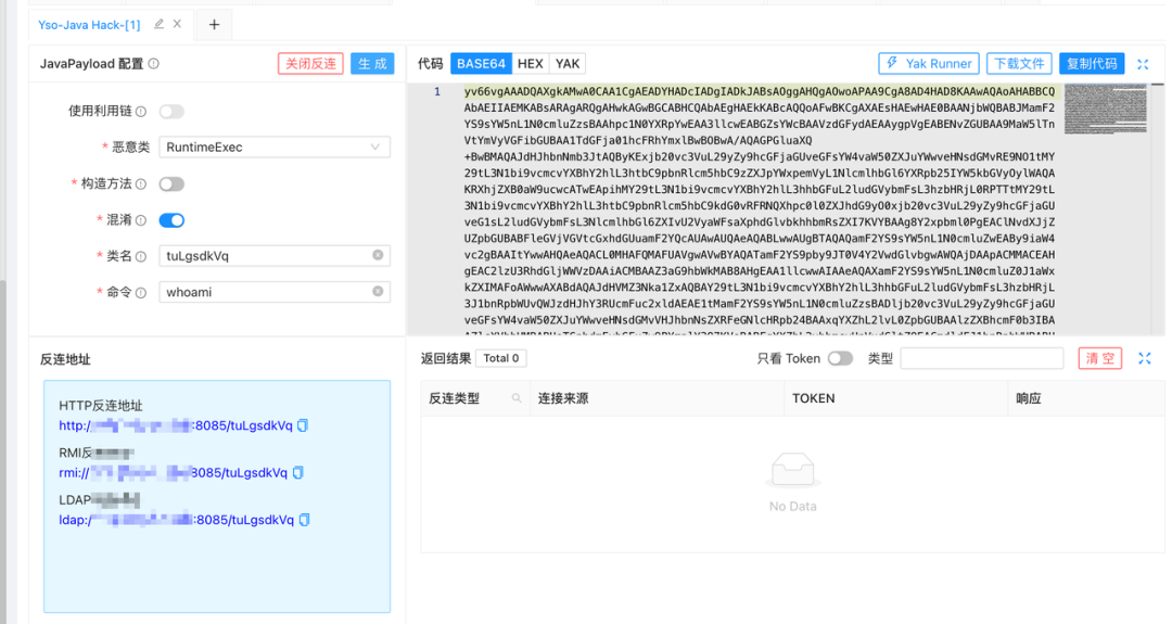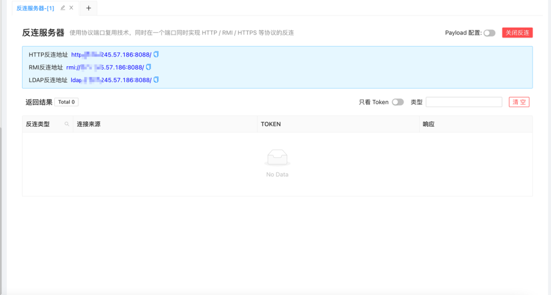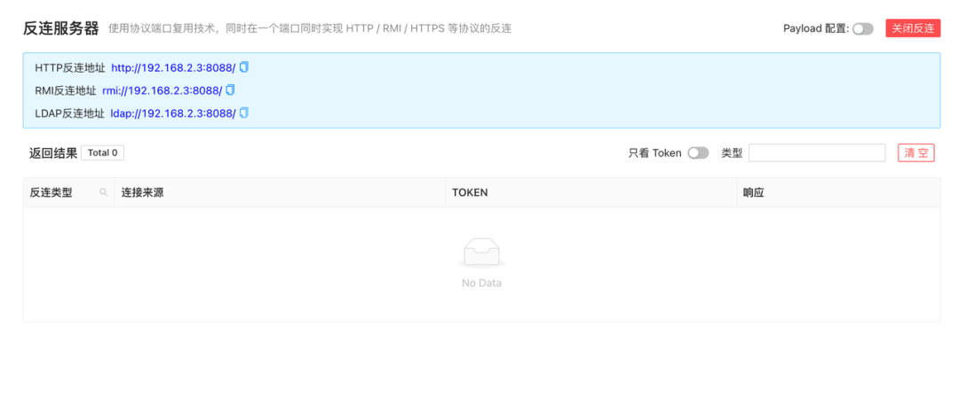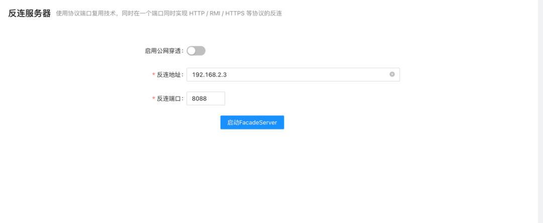 可以看见关闭 “使用利用链” 时多了一个启动反连服务按钮,下面再看一下反连服务。