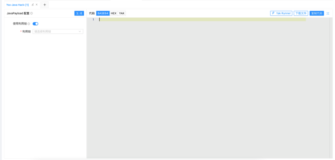 在返连页面右上角有个Payload配置,开启后可以看见左面出现类似 Yso-Java Hack 的页面,在这里可以配置payload。