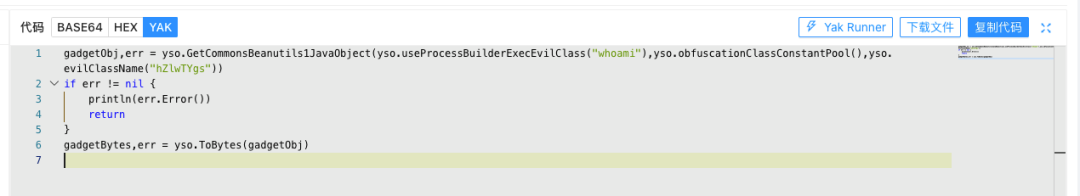 还可以展示生成payload的代码,还可以将代码发送到Yak Runner,师傅们写插件时如果懒得写,就可以直接在这里直接生成代码。