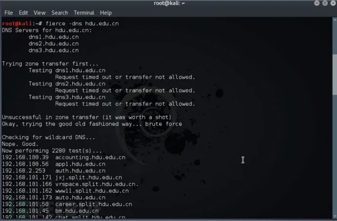 使用fierse工具,可以进行域名列表查询:fierce -dns domainName
