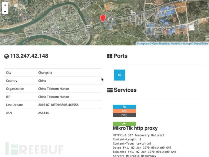 点击第一个结果的Details可以查看详细信息,包括地理位置、服务器开放的端口等等