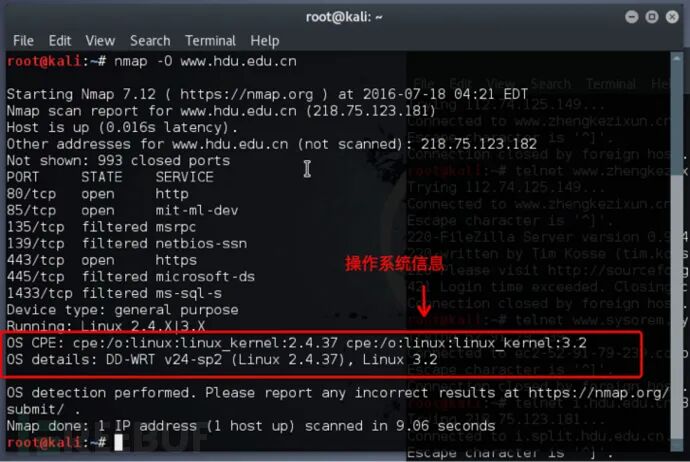 使用Nmap识别操作系统最简单的方法为使用-O参数