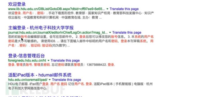 例如在google里输入:intext:杭电.将返回所有在网页正文部分包含”杭电”的网页