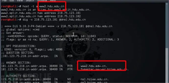 除了whois查询之外,我们还可以通过host命令来查询dns服务器,