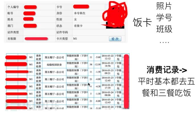 “社工库”是运用社会工程学进行攻击的时候积累的各方面数据的结构化数据库。这个数据库里有大量信息,甚至可以找到每个人的各种行为记录,比如酒店开房记录、个人身份证、姓名和电话号码。
