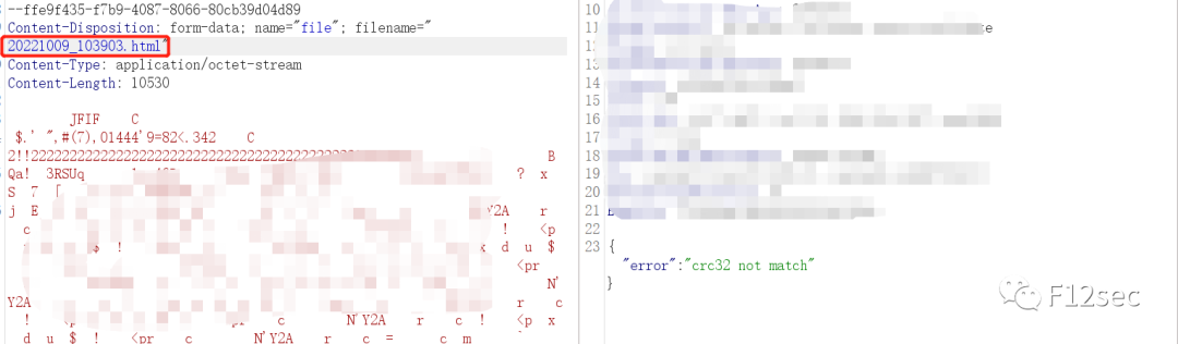 正在我纠结如何Bypass时,我尝试将上传数据包中的crc32校验参数删除,意外的绕过了crc32校验。