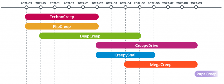 • FlipCreep、TechnoCreep和PapaCreep,它们从攻击者的服务器接收命令。