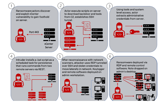 研究人员称这个影响VMware ESXi、Linux vCenter服务器和Windows虚拟机的新型恶意软件生态系统,使威胁行为者能够采取以下行动: