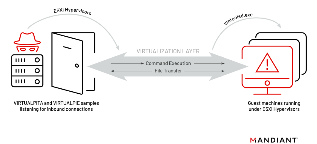 根据研究人员的说法,超级劫持攻击涉及使用恶意vSphere安装包( VIB )在ESXi管理程序上潜入两个植入程序,称为VIRTUALPITA和VIRTUALPIE。