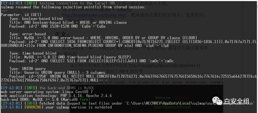 qlmap -u "http://wangehacker.cn/sqli-labs/Less-1/?id=1" --batch解释--batch是后面有一些选项我们选择默认选项
