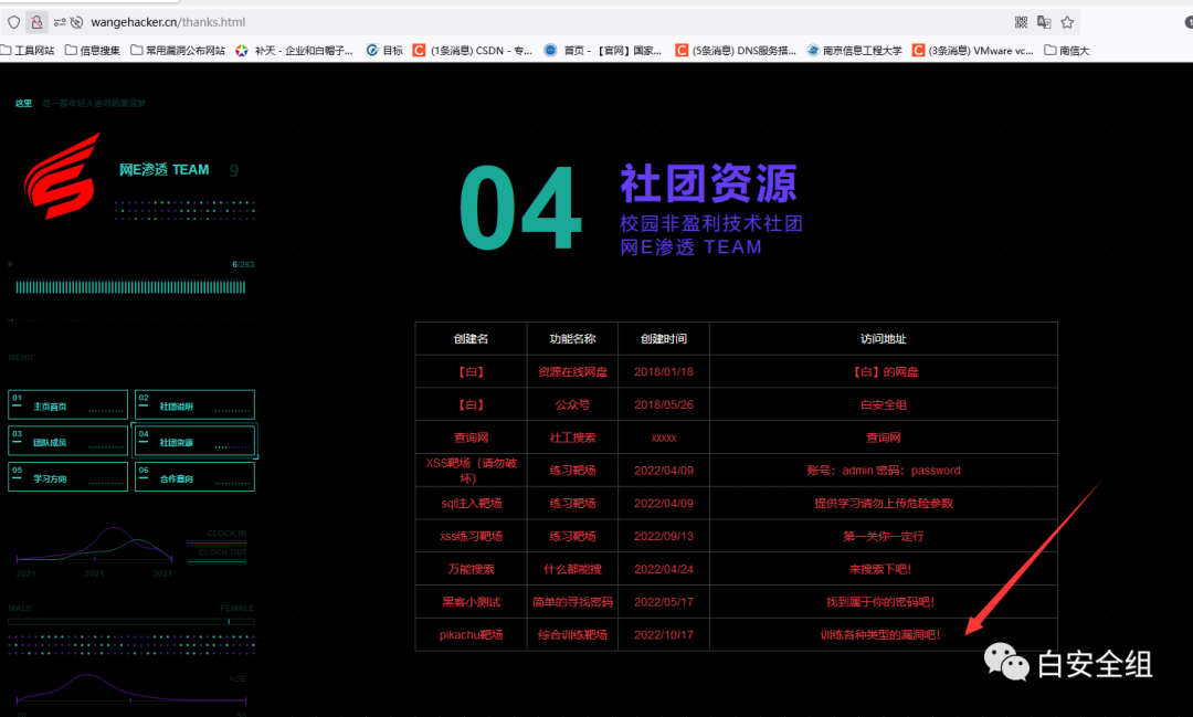 这也是一个比较知名的靶场,pikachu,我想大家也是经常用到,这里我就不介绍了,里面有很多适合新手对于漏洞理解的练习大家访问网址:http://wangehacker.cn/thanks.html