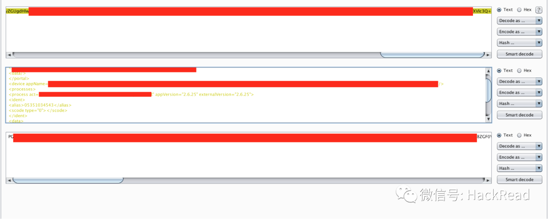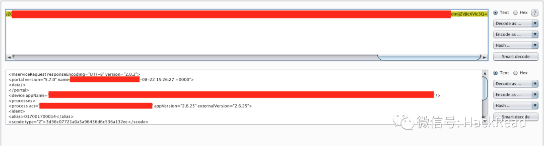 在此情况中,应用程序通过 base64 编码的 XML 请求向 HTTP 发布数据上发送所有请求。在登录机制上,它将用户名作为参数别名发送,将密码作为scode发送。scode 参数内的值已进行哈希处理。分析显示,它使用了所提供密码值的 md5 值。请求中还有另一个有趣的标志:scode 有一个属性,其类型值为 2。