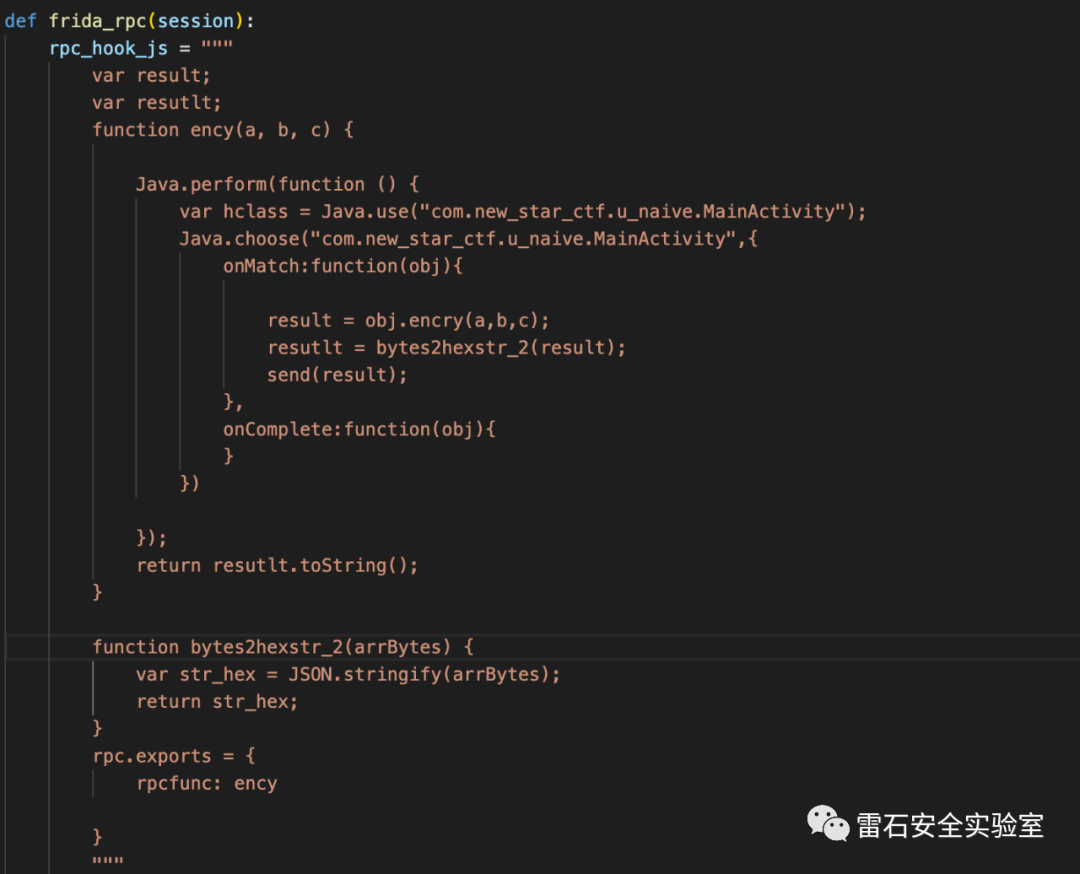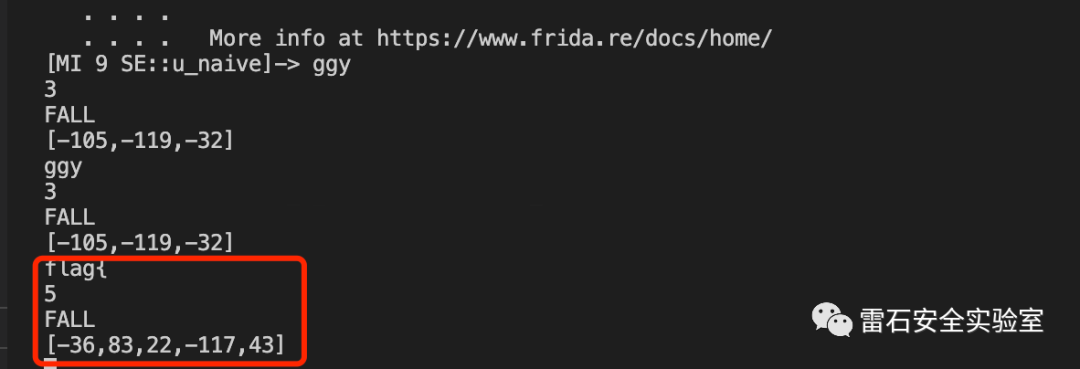 对比Java层中的byte数组,发现前几位已经能对上了,但是最后一位对不上,应该是因为so层中的加密算法后一位会影响前一位。 到这里就已经可以get到一个比较取巧的思路了,写个rpc脚本调用一位一位爆破flag。