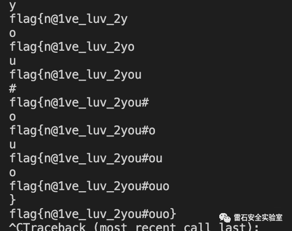 一位一位遍历所有可打印字符跑起来。 成功获取(爆出)到flag。