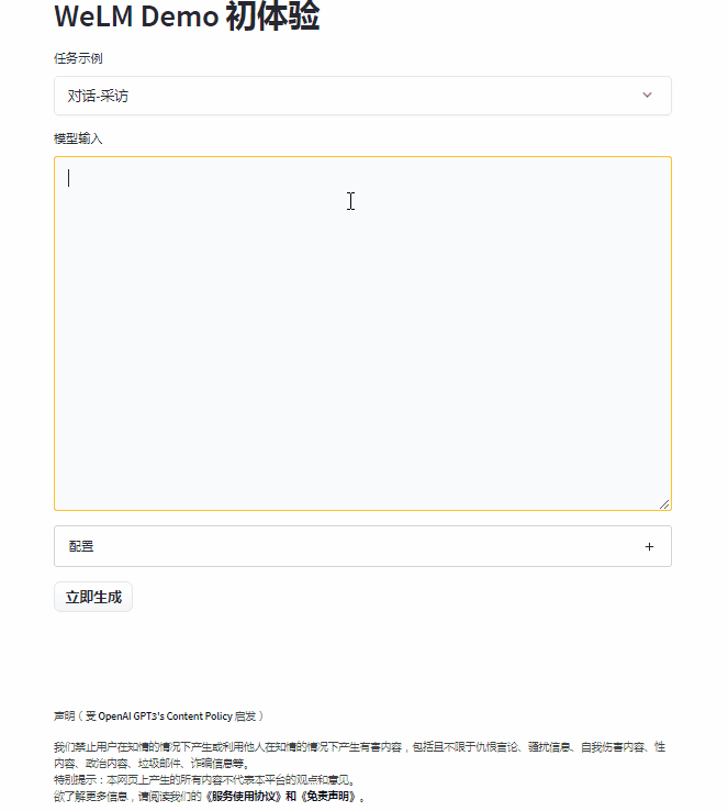 当然,WeLM 可以做到的远不止此,对话-采访、阅读理解、翻译、改写、续写、多语言阅读理解……都不在话下。我们为 WeLM 做了一个交互式网页(点击文末“阅读原文”直达),欢迎你来找TA“唠嗑”,发掘TA的更多本领。