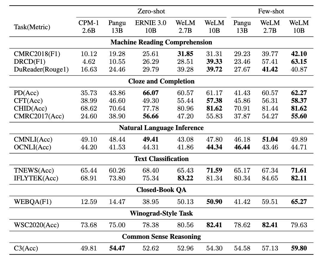 这是一个被“喂养”了许多数据的AI,TA可以以一当十,可以在零样本或少样本的情境下完成多种 NLP 任务(包括多语言任务)。TA便是 WeLM,一个学富五车 (well-read) 的 10 Billion 的中文模型,除了具备强大的中文理解和生成能力,还拥有处理跨多语言(中英日)任务的能力,进一步微调后,WeLM 可以拥有更好的零样本学习能力。