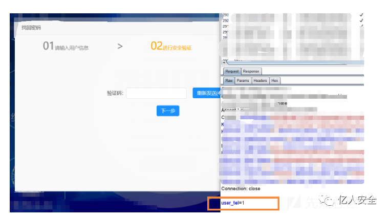 再来一次,抓包并修改响应包,将0改为1,放包后成功来到第二步,前端自动请求了一个后端接口发送验证码